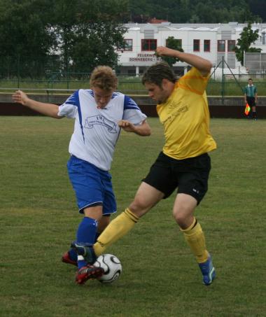 SC: Bohnenstengel, Michel, Bernschneider, Wild, D. Motschmann, St. Motschmann (71. GRK), Röhr, Kaiser, Fischer, Hessler (68. Brückner), Morina. BW: Weißgärber, Thom, Pohle (GK), Oertel (GK), Dennler, Behling, Wolfersdorf, Lemke, Daburger, Schwikowski, Fischer (76. Wagner). Schiri: Leitschuh (Barchfeld). Zuschauer: 120 Tore: 1:0 Kaiser (25.), 2:0 St. Motschmann (33.), 2:1 Oertel (61.), 3:1 Morina (77.) Trainer Hermannstädter blieb in seinem letzten Spiel für BW nichts erspart: Gelbsperre (Peters), Job (Eichelberger), Verletzung (Böttger) und humoristisch anmutende Absagen diverser Ergänzungsspieler. So wartete er mit einigen Überraschungen auf. Dennler wurde zum Libero befördert, Wolfersdorf und Fischer wechselseitig zum Manndecker, Pohle durfte wie schon gegen Geisa sich im Mittelfeld austoben. Aber auch Sonneberg mit einigen Sorgen, auf der Bank nur der 19jährige Brückner und um das Formular nicht ganz so traurig wie bei Niederpöllnitz aussehen zu lassen Horn, allerdings ohne Einsatzchance. Die Partie der Absteiger bot zunächst den wenigen Zuschauern all das, was man von so einer Partie erwarten durfte: Langeweile, kaum bis keine Chancen, Neutralisation in allen Spielgegenden und dazu einen Platz, der bei allem Respekt kaum Bezirksliganiveau aufwies. Außer Schüssen von Wolfersdorf und Oertel (9., 16.), einem Durchbruch von Morina, den Weißgärber beendet (6.) und einem Kopfball Lemkes nach Pohle-Freistoß (19.) kaum erregende Momente. Erst in der 22. Minute kam Bewegung in die dahindösenden Zuschauer. St. Motschmann hatte sich auf rechts gegen Dennler durchgetankt und den Ball flach nach innen gebracht. Dort turtelte Morina herum und vergeigte zum Entsetzen seiner Mitspieler aus Nahdistanz. 3 Minuten später das 1:0: Einen Freistoß vom agilen St.Motschmann drückt Kaiser am langen Pfosten ohne Bedrängnis über die Linie. Niederpöllnitz wehrte sich kurzzeitig. Behlings tollen Freistoß hält Bohnenstengel und der Keeper ist auch beim Nachschuss von Lemke zur Stelle (30.). In einer Art plötzlicher Tiefschlaf versanken gleich danach Wolfersdorf und Fischer. Frei nach dem Motto: „Nimm du ihn nicht, ich hab ihn auch nicht“ bugsierte Wolfersdorf St. Motschmann den Ball in den Lauf, der bedankt sich mit dem 2:0 (33.). Pohle hätte ja noch mal Hoffnung bringen können, kommt aber trotz leerem Tor und zurecht liegendem Ball nichht dazu, beides erfolgreich zu nutzen (38.).