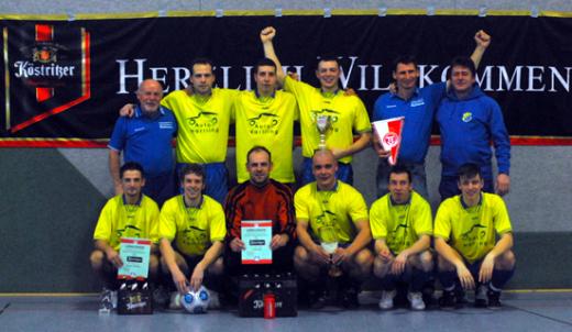 Bezirksligist SG Dietzhausen/Dillstädt (Foto oben) hat am Samstag (6. Februar) in der Werratalhalle Hildburghausen die Südthüringer Hallenmeisterschaft um den Köstritzer Pokal gewonnen. Dietzhausen hatte als eigenständiges Team bereits 2002 und 2005 triumphiert. Die Mannschaftvon Trainer Stefan Menz (acht Punkte) siegte in einem spannenden Turnier verdient vor dem SV Eintracht Heldburg und dem TSV 1911 Themar(je 7). Die Entscheidung für das spielerisch am besten auftretende Dietzhausen/Dillstädt fiel in der abschließenden Partie gegen die SG Reurieth/Dingsleben (2:1), die mitnur einem Punkt den letzten Platz belegte. Dieses Remis erzielte Reurieth ausgerechnet gegen Heldburg, das damit seine Chance auf den Titel verspielte. Platz vier belegte der TSV 1868 Ummerstadt (4).