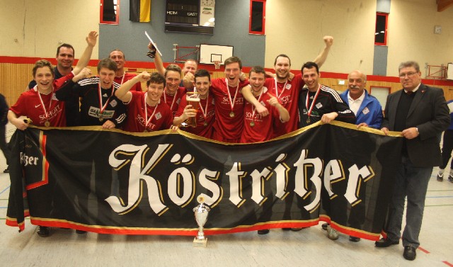 Der SV SCHOTT Jena, derzeit Dritter der Verbandsliga, gewann erstmals die Hallenmeisterschaft des Thüringer Fußball-Verbandes (TFV) und hole sich damit den Köstritzer Hallenpokal. In einem spannenden Endspiel setzte sich die Mannschaft von Steffen Geisendorf in der Verlängerung gegen den Ligakonkurrenten SV 09 Arnstadt mit 2:1 durch. Der Siegtreffer für die Jenaer fiel dabei elf Sekunden vor Ablauf der dreiminütigen Verlängerung durch Marcus Hacker. Dass es jedoch überhaupt zu dieser Zugabe kam, verdankte der spätere Vizemeister Daniel Trübenbach. Der hatte den Ball nach einer Freistoßablage fünf Sekunden vor der Schlusssirene in der regulären Spielzeit (14 Minuten) in die Maschen gejagt und damit den Führungstreffer durch Steffen Beckert ausgeglichen. Zuvor war das Endspiel von der Taktik geprägt, wobei die Kontrahenten zunächst darauf aus waren, ja keinen Fehler zu machen.