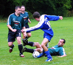 Unnötige Pokalniederlage Vieselbach, als einziges Kreisliga-Team in der Runde der letzten 16 Mannschaften, hätte locker in die nächste Runde einziehen müssen. Am Ende wurden sie wegen ihrer haarsträubenden Chancenverwertung im Elfmeterschießen bestraft. Ein Stunde lang stimmte auch das Ergebnis, obwohl bis dahin schon mehr als nur ein 3:1-Vorsprung möglich war. Auch das zwischenzeitliche 2:3 bauten sie schnell wieder auf den alten Zwei Tore Vorsprung aus. Was dann aber vor allem von Vogler und auch Winkelmann für Chancen versiebt wurden, sollte ich später rächen. In den letzten zwei Minuten der regulären Spielzeit schafften die Eichsfelder noch den Ausgleich. Unentschieden auch nach 120 Minuten und im Elfmeterschießen versagen Eddy und Erik Hörcher sowie Vogler vom Punkt.